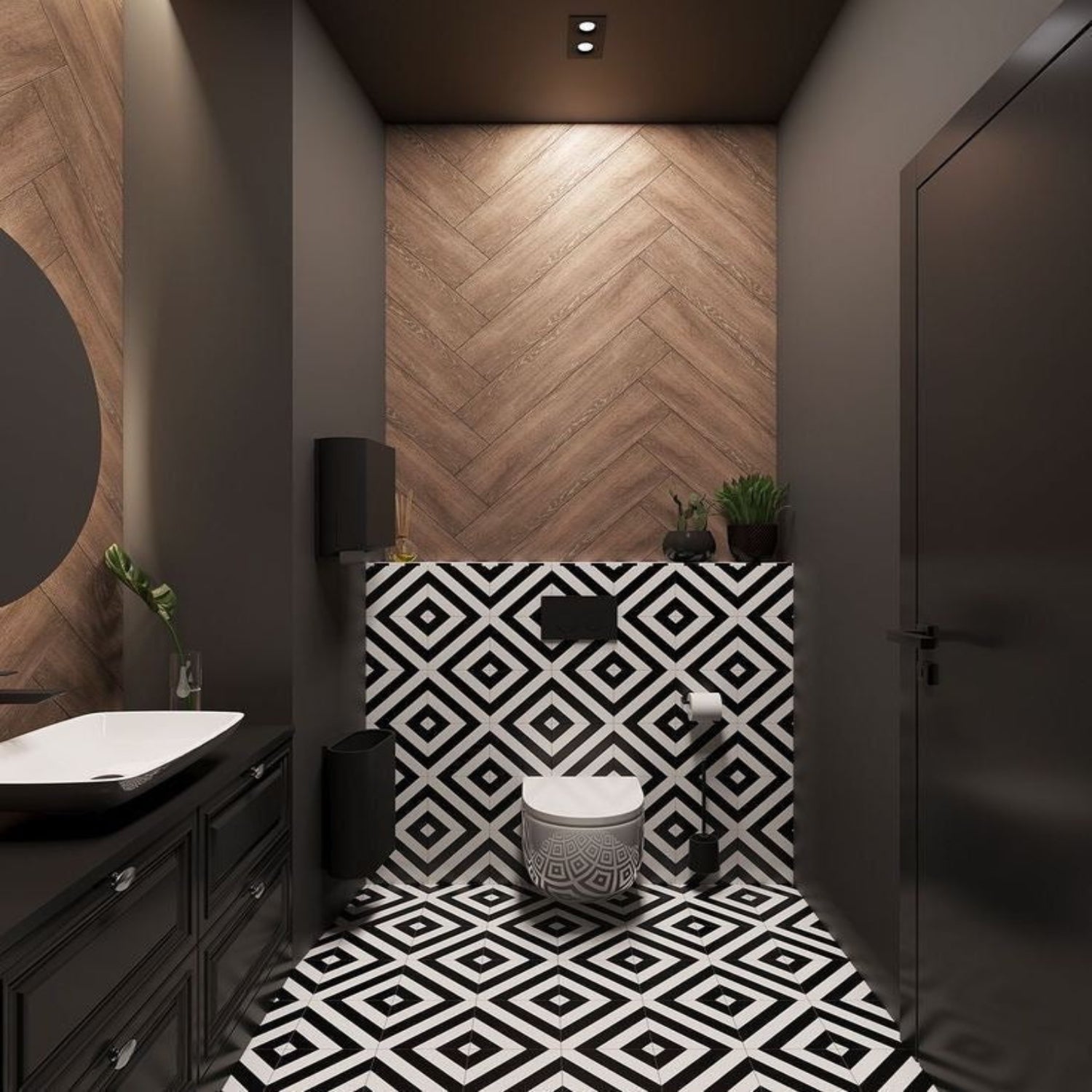 High visual impact: Black creates an elegant, dramatic atmosphere for modern bathrooms.